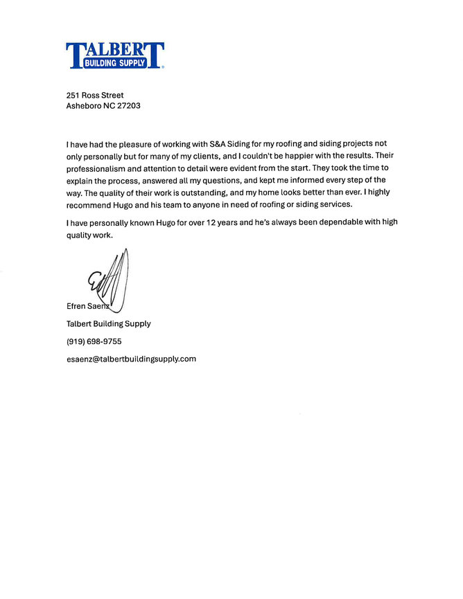"S&A Siding did a fantastic job on our roof replacement. Highly recommended!!"